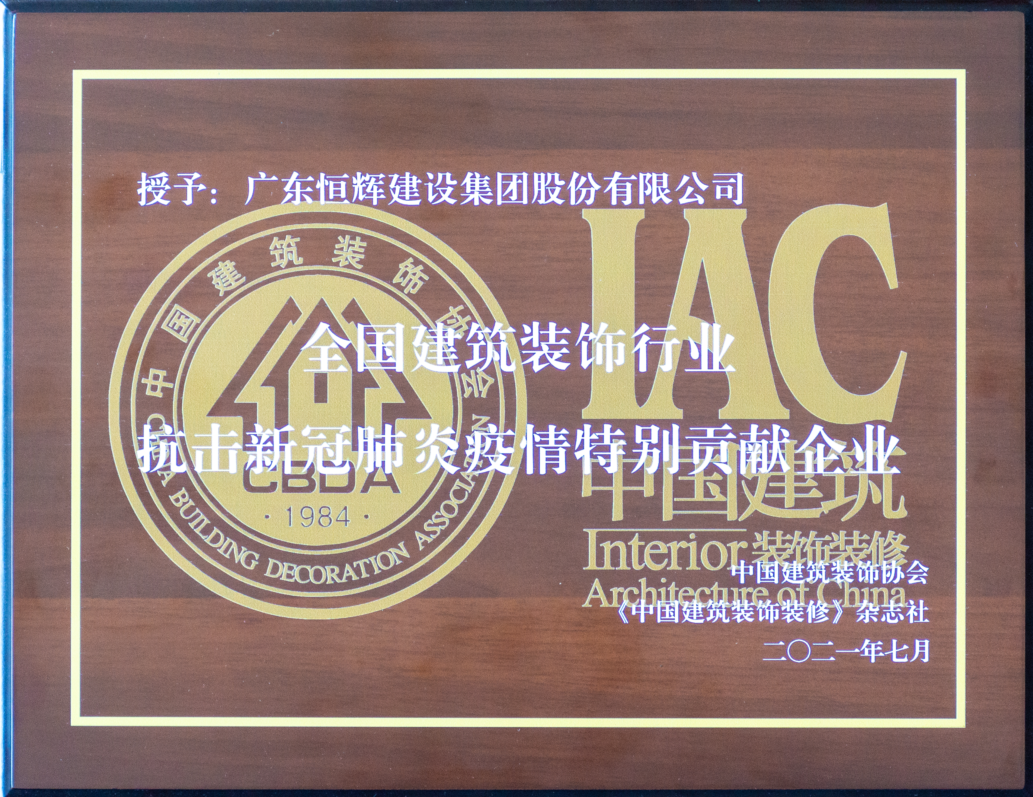 “全國建筑裝飾行業(yè)抗擊新冠肺炎疫情特別貢獻企業(yè)”