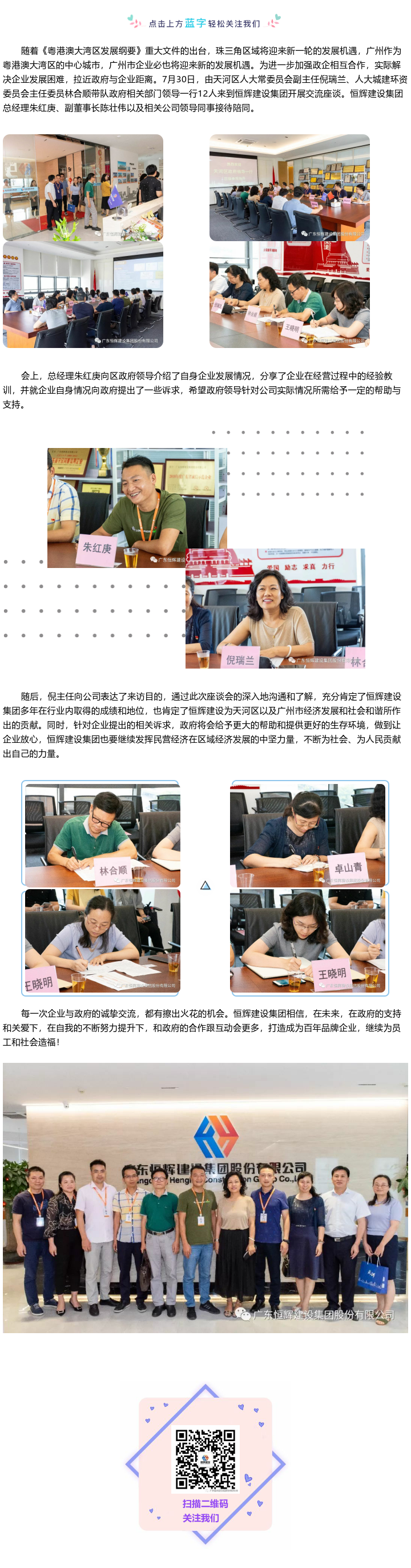 天河區(qū)政府領(lǐng)導(dǎo)一行蒞臨恒輝建設(shè)集團(tuán)交流指導(dǎo)