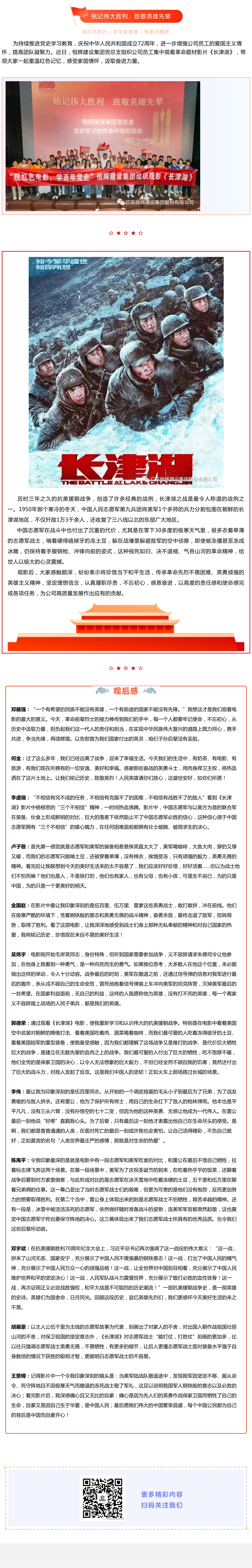 觀紅色電影,學(xué)百年黨史丨恒輝建設(shè)集團(tuán)組織觀影《長津湖》