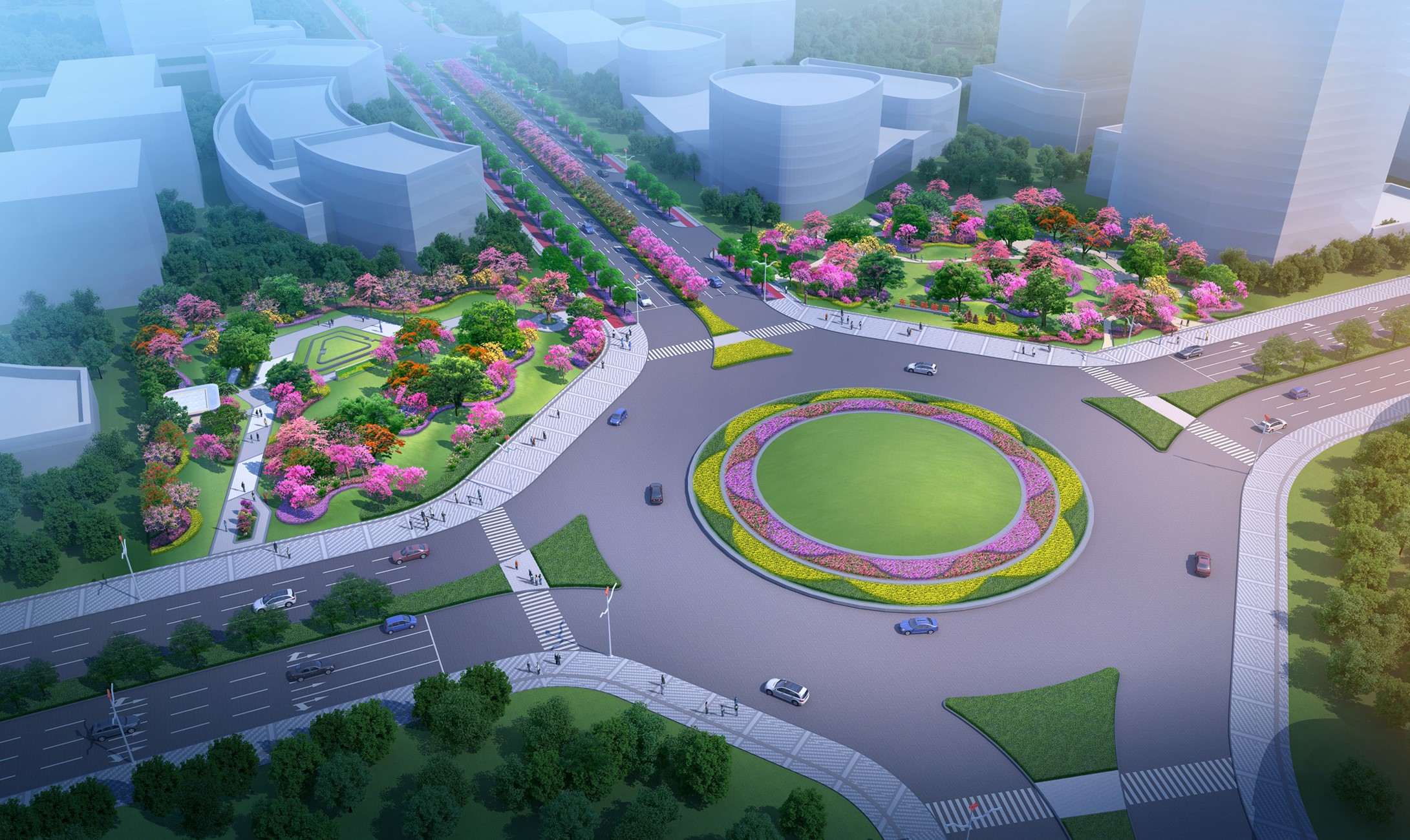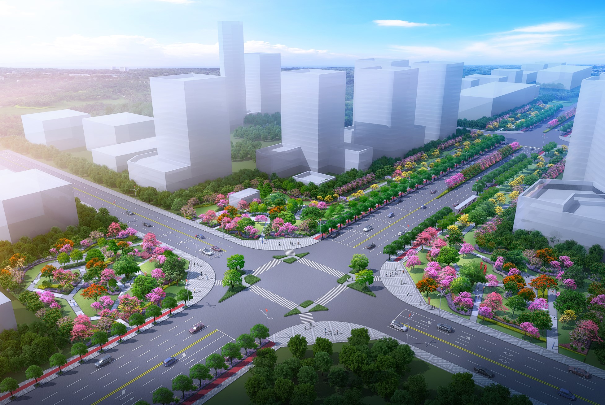 花都區(qū)迎賓大道西全長6.8公里,道路紅線寬60m,雙向8車道,設計速度60KM/h。對道路整體綠化風格、變化韻律、色彩節(jié)奏等方面進行沿線景觀綠化效果提...