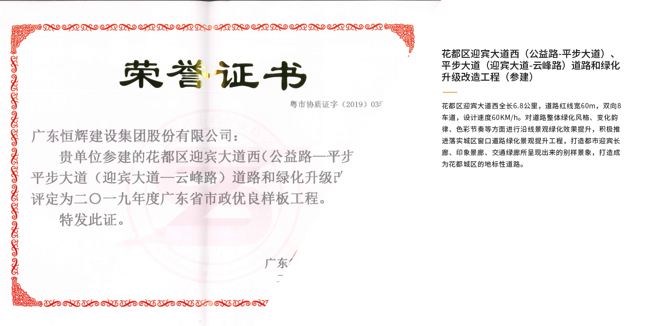 花都區(qū)迎賓大道西(公益路-平步大道)、平步大道(迎賓大道-云峰路)道路和綠化升級改造工程(參建)