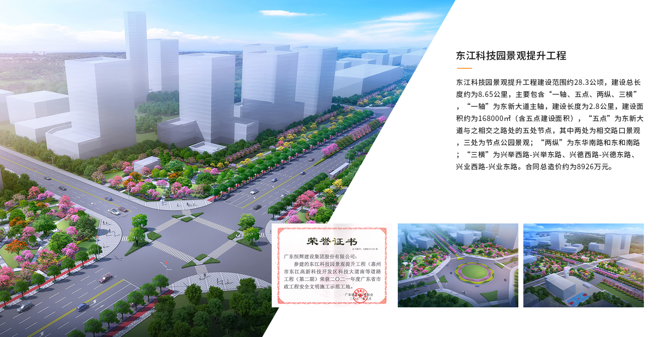 東江科技園景觀提升工程建設范圍約28.3公頃,建設總長度約為8.65公里,主要包含“一軸、五點、兩縱、三橫”,“一軸”為東新大道主軸,建設長度為2.8公...