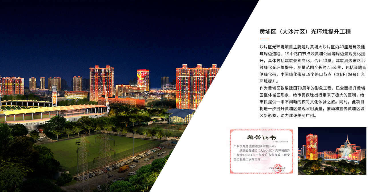 大沙片區(qū)光環(huán)境項目主要是對黃埔大沙片區(qū)內43座建筑及建筑周邊道路、19個路口節(jié)點及黃埔公園等周邊景觀亮化提升,具體包括建筑景觀亮化,合計43座。建...